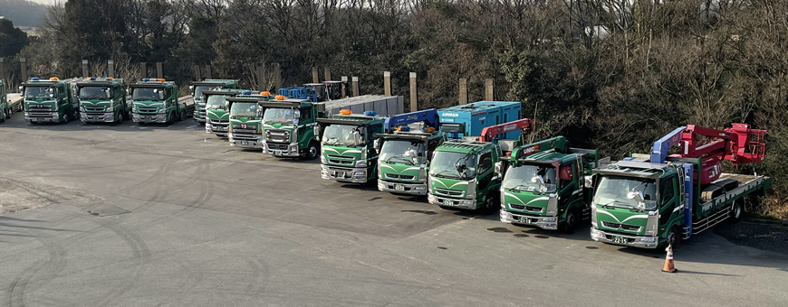 トラクタ・トレーラー・大型セルフ・各種トラックを駆使し、