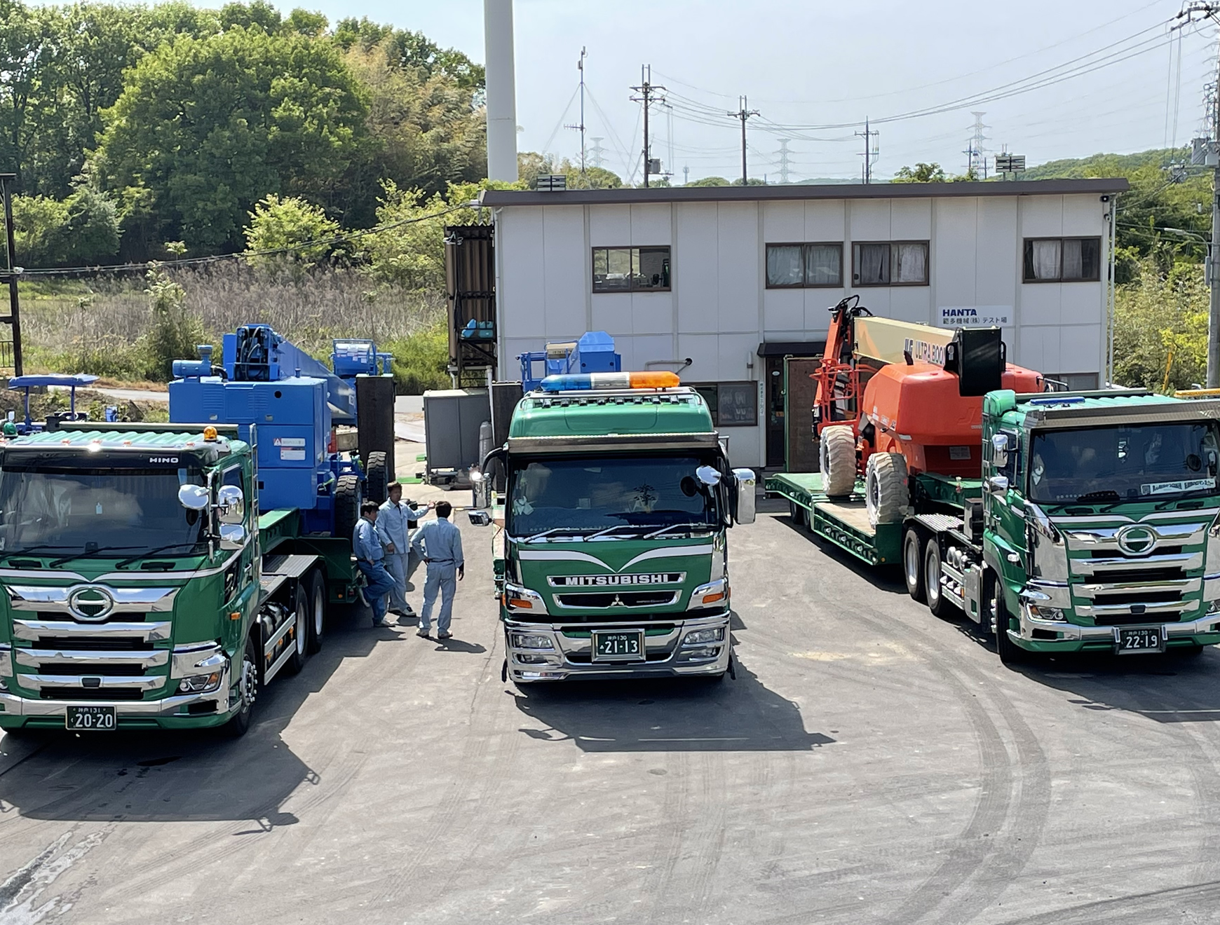 トラクタ・トレーラー・大型セルフ・各種トラックを駆使し、安全かつ迅速な輸送サービスを提供。経験豊富なスタッフが大型重機や重量物や車両の運搬にも柔軟に対応します。